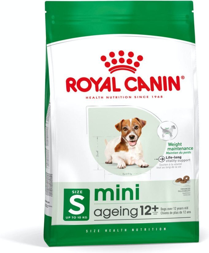 מזון כלבים איכותי מבית רויאל קנין לכלבים קשישים מגזע קטן - מיני 12+. מזון יבש מלא לכלבים בוגרים קשישים במשקל עד 10 ק"ג. חתיכות מותאמות בגודלן, בשילוב טעמים טבעיים שמסייעים להשביע את תאבונו של הכלב.