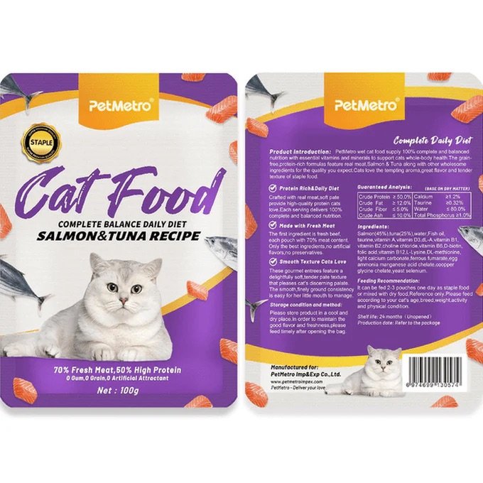 פט מטרו פאוץ׳ מזון טבעי לחתולים סלמון וטונה טרי PetMetro