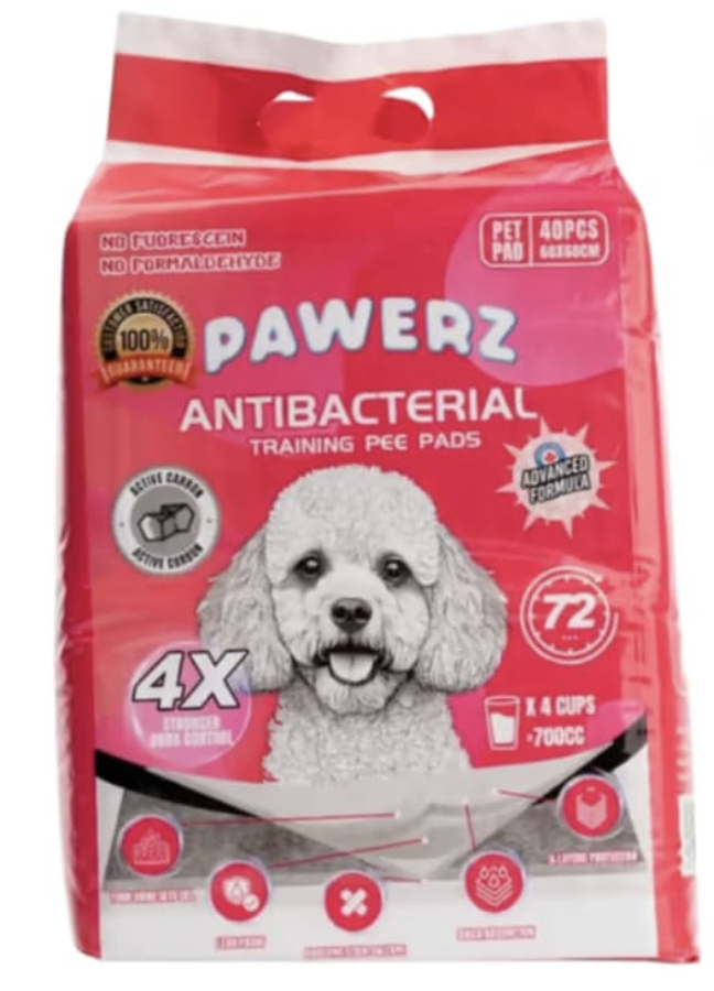 פדים PAWERZ אנטיבקטריאלי במידה 60*60 ללא קרבון בעלי ספיגה גבוהה במיוחד ונוח לשימוש עם אפשרות להדבקה לרצפה בפינות כדי שהגורים לא יוכלו להזיז את הפד.