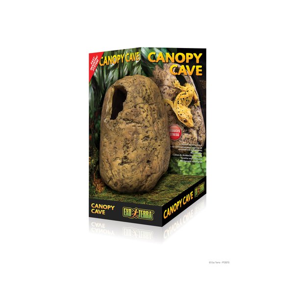 מערת החופה של אקסו טרה יוצרת בית גידול רב מפלסי. זוחלים ודו-חיים השוכנים בעצים אינם ששים לעתים קרובות להשתמש במערות צמודי קרקע לצורך מסתור או קינון. אזור מסתור מתאים הוא מאפיין חיוני של טרריום טבעי. ללא מקום בטוח להסתתר ולישון זוחלים ודו-חיים יפתחו בקלות מתח שישפיע על הפעילות והתיאבון שלהם. זוחלים לחוצים מסוגלים לסגת במחבוא המוגבה והבטוח הזה, ולחוות את ההזדמנות להחזיר את כוחם. כשהיא מלאה בטחב היער של אקסו טרה, מערת החופה מתאימה במיוחד כמסתור קינון לח עבור זוחלים ודו-חיים השוכנים בעצים כדי להפקיד את הביצים שלהם. מערכת קליפס נוחה מאפשרת לך להסיר את העור ולבדוק את החיות שלך או הביצים שלהן מבלי לפגוע בהתנהגות הקינון שלהן. נצמד סטטי כלול כדי לכסות את חור הריגול ולהחשיך את פנים המערה כדי לספק פרטיות רבה יותר לבעל החיים המתגורר על מנת למנוע מתח. חור הריגול מאפשר לך לבדוק את החיות שלך או את הביצים שלהן מבלי להפריע להן פשוט על ידי ניתוק ה-1/3 העליון של ההצמדה הסטטית, הצצה, ולאחר מכן החזרת ההיאחזות הסטטית למקומה המקורי.