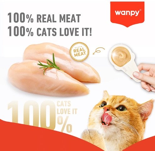 Wanpy וואנפי חטיף ליקוק בכפית לחתולים בטעם עוף 10 יח במארז