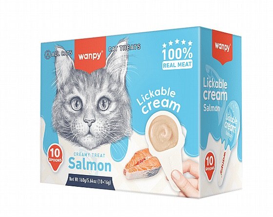 Wanpy וואנפי חטיף ליקוק בכפית לחתולים בטעם סלמון 10 יח במארז