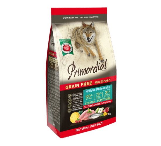פרימורדיאל מזון יבש לגורי כלבים נטול דגנים מגזע קטן סטארטר הודו והרינג