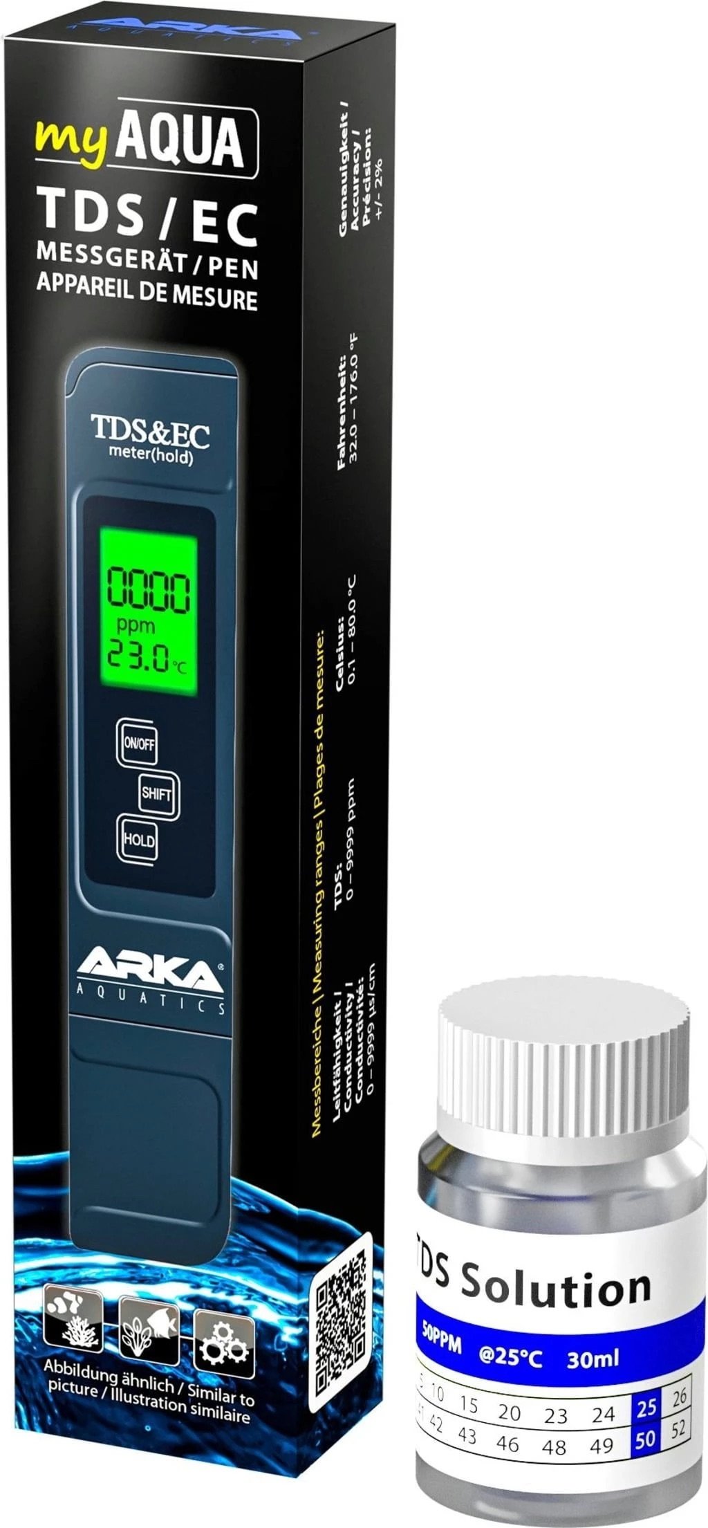 ARKA TDS/EC מד איכותי+נוזל כיול